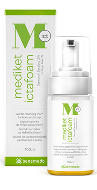 Mediket Ictafoam je jemná a účinná mycí pěna s bílým ichthyolem, určená pro ošetřování kůže lidí se seboreou či jinými kožními problémy projevujícími se svěděním a podrážděním.